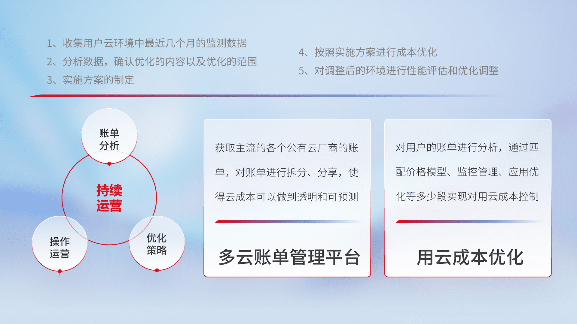 监控业务系统资源开销,,对资源的消耗精确计量,,实现费用的透明化管理,,不断提升资源使用率,,,,调整资源购买方式,,,降低资源费用成本,,,用云成本可预测、、用云费用可优化,,,,云资源配额有据可依。。